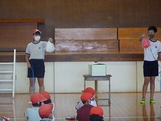 朝は、体育館でお別れ集会をしました。縦割班で7つのゲームに取り組みました。5年生がしっかり準備をしてくれ、楽しく活動できました。