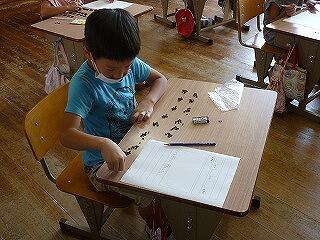 低学年の児童も、跳び箱の練習をしたり、音楽で歌を歌ったり、楽しく学習していました。4.5年生は、算数で図形の学習を頑張っています。