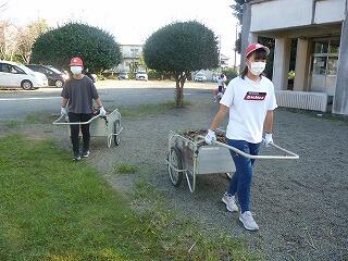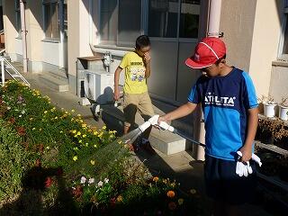 晴れている日には、花壇の手入れや校内の草取りなどをしています。雨の日にも、「何かすることはありませんか?」と仕事を見つけ、窓ふきや鉢洗い、校内の清掃に取り組むようになりました。