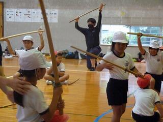 この学習は、「地域の人に、昔から伝わる遊びを教わったり、一緒に遊んだりする中で、地域の人と関わったり触れ合ったりすることのよさに気付き、進んで触れ合い、交流しようとすることができるようにする」ことが目標ですが、現在、宮崎県にまん延防止措置が出ていることから、学校内で活動することになりました。