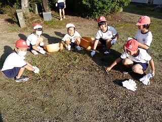 朝、氷も張るくらいの寒さでしたが、子どもたちは花壇の除草や運動場の杉の葉を集めなどのボランティアに行っていました。