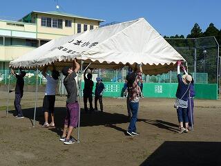 今回は、心肺蘇生法のほかに、熱中症、溺水時の応急処置も教えていただきました。参加した20名の保護者の方々は、互いに心肺蘇生法の順序を確認しながら、熱心に取り組んでいました。