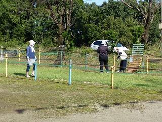これは、プロジェクト委員会の児童が石を紺色と緑色の2色に塗り、それを運動場の「ふれあいの森」の木の間や草むらに隠し、2色の石を探したらゴールするというゲームです。