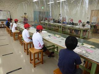 1年生は、紙皿を使って、コロコロ回る作品作りをしていました。同じ材料でしたが、飾りを工夫して、個性豊かな作品ができました。