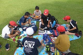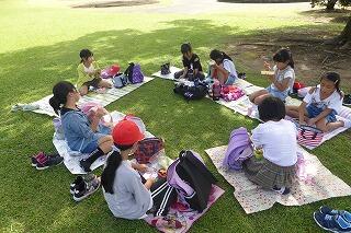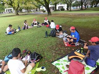 10時前には、学校を出発し、山本公園に行きました。芝のグランドはふかふかで、寝転ぶ子も見られました。クラスで遊んだり、縦割りで遊んだり、みんな笑顔で過ごしていました。