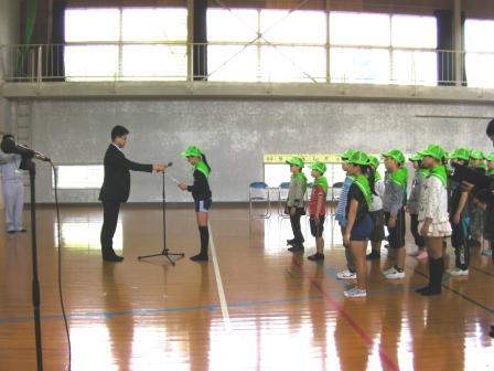 はじめに、校長先生より各学年の代表児童へ修了証を渡していただきました。