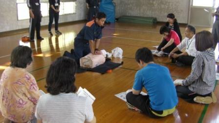 水泳指導のシーズンを前に、心肺蘇生法について職員研修を行いました。東児湯消防組合から5名の職員を講師として派遣していただき、心臓マッサージや人工呼吸、AEDの取扱いについて学びました。毎年実施している研修ですが、身の引き締まる思いで皆真剣に研修に参加しました。今後、水泳指導前健康調査を行うとともに、保護者の皆様と十分連携して健康観察・健康管理に努め、水泳指導時の安全確保を徹底したいと考えています。