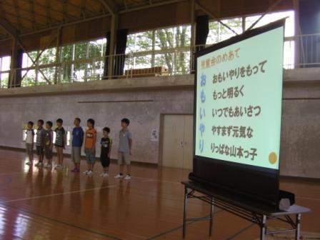 はじめに、校長先生から、各学年の1学期中の成長の様子と山本小学校あたりまえのこと3箇条についてのお話がありました。