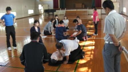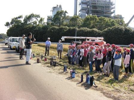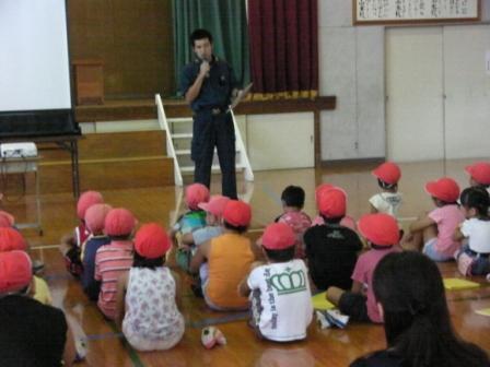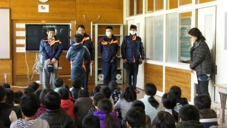 今日は、東児湯消防組合川南分遣所の方々においでいただき、火災時の避難訓練を