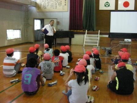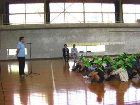 防災の日の9月1日に地震の避難訓練を行いました。今回は学級でしっかり『おはしも」の合言葉や、避難経路について学習しました。避難にかかった時間は2分33秒。真剣に、素早く行動することができました。その後、体育館でDVDを観て、周りに何もないときに頭を守る「だんごむしのポーズ」、机などの脚をつかんで頭を守る「おさるのポーズ」などを学習しました。