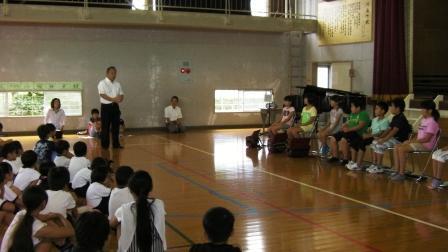 むしむしする暑さの中、1学期の終業式が行われました。児童全員が元気で無事終業式を迎えられたことが何よりです。校長先生に、各学年の良くなったところを褒められました。また、3年生の代表児童が、1学期がんばったことをしっかりと振返って発表してくれました。夏休みを元気に有意義に過ごして、2学期に元気に登校してください。
