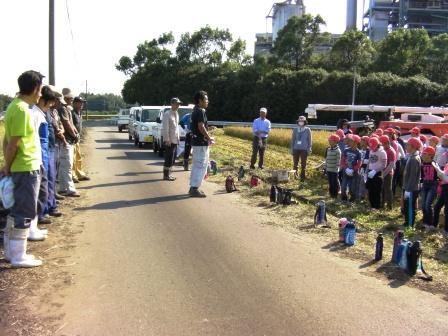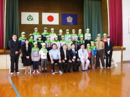 高鍋警察署1名、交通安全協会5名の方々に来ていただき、内輪差の実験や横断歩道の渡り方を教えてもらいました。児童は、登校班ごとに班長の指示で、真剣に横断歩道を渡る練習を行いました。