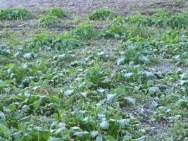理科園には、実験用のジャガイモの花が咲きました。モンシロチョウの幼虫用のキャベツも見事に穴だらけです。