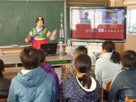 宮崎県の国際交流員の方を招いて、2回に分け、国際理解講座を行いました。交流員の方が、韓国の方でしたので、韓国の文化や伝統、学校、遊び(韓国のすごろく)などについて学習をしました。この講座を通して、韓国の文化等について、子ども達は、より理解できたのではないかと思います。互いが、近くて近い国になれるように、そして将来、国際的な視野を持った大人になれるよう、その基礎を培っていきたいものです。