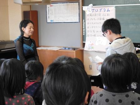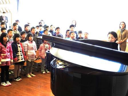 プログラムは、「風の通り道(トトロの挿入曲)」をはじめクラシック曲7曲と、アンコール曲に卒業式のうた「ビリーブ」を演奏していただき、ピアノ演奏に合わせて合唱しました。