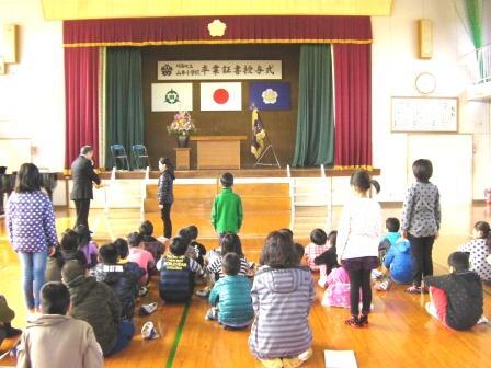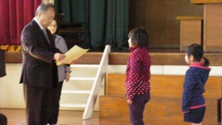 はじめに、校長先生より各学年の代表児童へ修了証を渡していただきました。