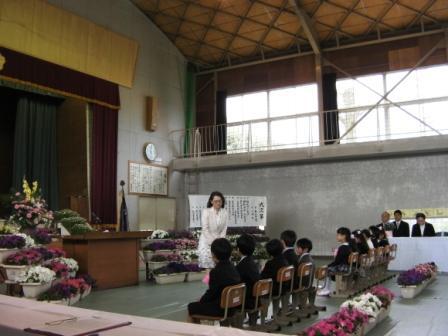 平成25年度、第67回卒業証書授与式が行われました。本年度は、男子9名、女子6名が巣立っていきました。本年度、最上級生としていろいろな場面で、とても活躍してくれた6年生らしく、とても堂々とした素晴らしい卒業式でした。中学校での活躍を祈念します。