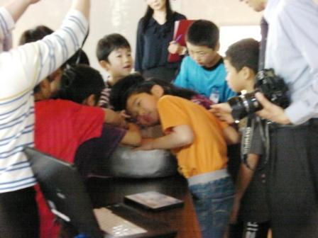 次に、南校舎2階ワークスペースに移動し、1,2,5年生と3,4,6年生の班に分かれ、