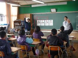 本日、6年生は、町の選挙管理委員会の方を招いて、出前授業をしていただきました。3校時に『みんなで考えよう「選挙」』というテーマで、選挙についての基本的なお話をしていただきました。途中で、「明るい選挙」推進キャラクター「めいすい」くんも登場し盛り上がりました。4校時は、スペシャル給食総選挙について、町内全小学校児童が、3つの給食メニューの中から投票する取組の中で、メニューの選挙ポスター作成と推薦原稿作りを行いました。昼休みには、音楽室を投票会場にして、実際の投票用具を使って、全校児童で投票しました。自分が選んだメニューが献立に選ばれたいと思う児童がほとんどでした。授業から投票まで関わった6年生は、「20歳になったら、必ず投票に行きたい」とほとんどの児童が感想を言ってくれました。さすがでした。