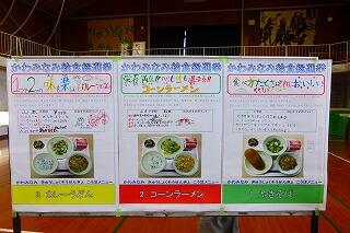 まず、6年生が、教室で選挙の意義について教えていただくとともに、アイデアを出し合いながら模擬選挙で使う「おすすめの給食献立」のポスターを作成しました。そして、校内放送でおすすめの理由の演説を行いました。