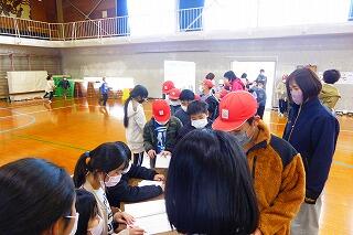 次に、昼休みに、体育館で模擬選挙を行いました。投票するのは1~5年生で、6年生が受付、投票用紙渡し、立会人等の役割を果たしながらの模擬選挙でした。投票する1~5年生も、興味深そうに取り組んでいました。