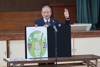 宮崎県ではたくさんの野球やサッカーのチームがキャンプを行い、4月から10月くらいまで行われる試合に向けての準備をしていると話がありました。それを児童のみなさんに置き換えると、2月、3月は4月からの新しい1年に向けての準備の期間と話され、「分からないところをそのままにしないでほしい。分からないところがあったら、担任の先生に質問してください。分かるまで教えてくださいます。」と話がありました。