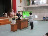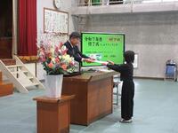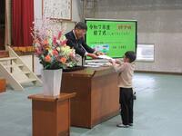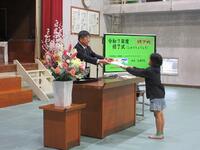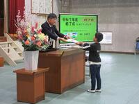 現学年の授業がすべて終了したという式(修了式)がありました。修了証を各学年の代表児童に渡しました。
