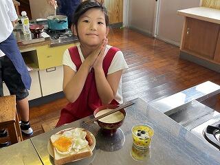 子どもたちは、朝食に合うスープや卵料理、野菜炒め、フルーツヨーグルトなどを作っていました。