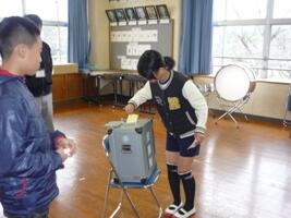 本日、6年生は、町の選挙管理委員会の方を招いて、出前授業をしていただきました。3校時に『みんなで考えよう「選挙」』というテーマで、選挙についての基本的なお話をしていただきました。途中で、「明るい選挙」推進キャラクター「めいすい」くんも登場し盛り上がりました。4校時は、スペシャル給食総選挙について、町内全小学校児童が、3つの給食メニューの中から投票する取組の中で、メニューの選挙ポスター作成と推薦原稿作りを行いました。昼休みには、音楽室を投票会場にして、実際の投票用具を使って、全校児童で投票しました。自分が選んだメニューが献立に選ばれたいと思う児童がほとんどでした。授業から投票まで関わった6年生は、「20歳になったら、必ず投票に行きたい」とほとんどの児童が感想を言ってくれました。さすがでした。