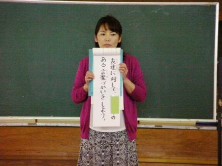 また、「心の教育」担当の先生からは、今月の生活目標「気持のよい言葉づかいをしよう。」