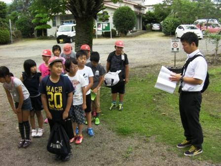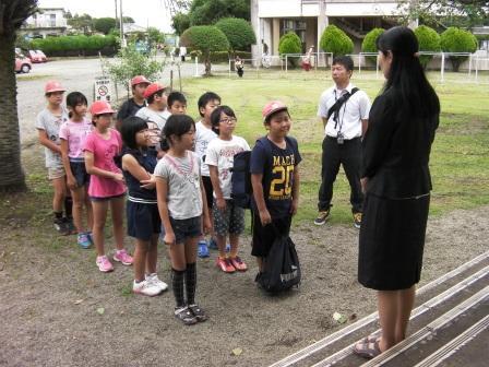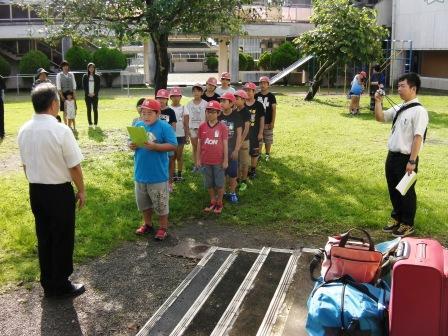 朝8時から出発式を行いました。5年生12名が体育館横に集合し、校長先生から