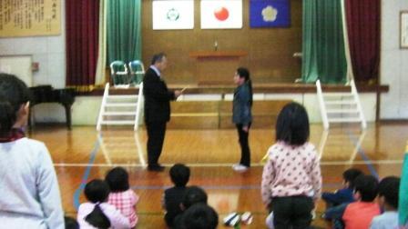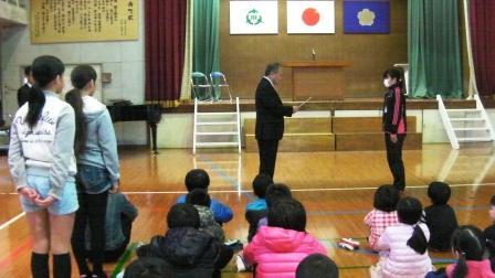 また、本校出身の赤池和子様より温かいプレゼントをいただいたことについてお話しをしていただきました。書道家・赤池和子さんは、宮崎県が口蹄疫にみまわれた際、寄付をしていただいたということです。今回山本小学校に、1年間毎週心温まる写真を4枚ずつ届けていただけるということです。大変ありがたいことです。全校の子どもたちがぜひ見て、豊かな心と赤池和子様の思いをくみ取ってほしいと願っています。