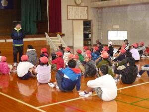 本校では、児童の体力向上を図るために体育の時間での運動量の確保のほかに昼休みの戸外運動を進めています。雨天時には、体育館で「イキイキレイン」といって縦割り班でボールゲーム等をしたりしています。2月の縄跳び大会に向けて、縄跳びの練習が始まりました。今日は、縦割り班での長縄とびの注意点を確認した後に、練習をしました。1年生から6年生までが同じ班で跳ぶので高学年の配慮が必要です。みんながんばれ!
