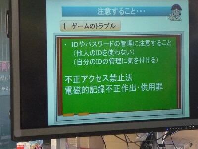本日、3校時に、5・6年生を対象とした非行防止教室がありました。今回は「インターネットの使い方を考えよう」というめあてで、特にゲームのトラブル、コミュニケーションアプリのトラブル、SNSのトラブルについて警察の方からお話がありました。子ども達にとって身近な内容でしたので、子供たちも懸命に学習していました。トラブルの加害者になったり、被害者なったりしないようにしっかりと学べようです。