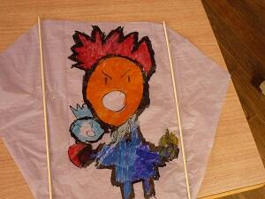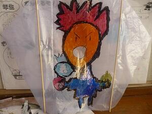 今、1年生は、生活科の学習で「きたかぜとあそぼう」という単元で今の季節の特徴を生かした遊びを楽しんだり工夫したりしながら、季節の変化を感じとる学習をしています。実際には、ビニルと竹ひごで簡単な凧を作って遊びます。今日はタコ糸を付けるなどの作業をしていました。たこの柄は子ども達一人一人が考えたものです。世界に一つだけの凧がもうすぐ完成です。凧を上げをしながら季節をしっかり感じとって欲しいです。