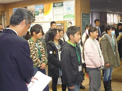 本日から平成28年度の日本3大開拓地小学生交流事業が始まりました。本校からは6年生女子3名が参加しました。3大開拓地とは宮崎県の川南町、青森県の十和田市、福島県の矢吹町で、毎年それぞれの町から小学生が参加して交流を行います。今年度は十和田市が会場です。本日、午前7時15分より役場ロビーで出発式がありました。日高町長より「挨拶をしっかりし、決まりを守り、楽しんできてください。」との話がありました。みんな元気に出発しました。帰りは1月30日になります。
