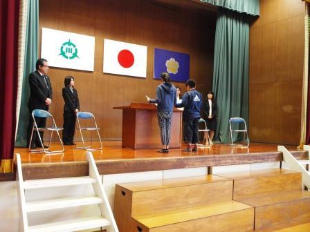 また、来賓を代表して、本町産業推進課課長の山本様より、山本小学校のみどりの少年団活動への感謝の言葉をいただきました。本年度も、更なる活動の充実を望みますとの激励のお言葉をいただきました。