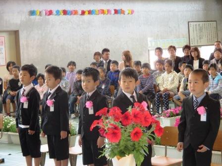 昨日までの雨がうそのように、晴天に恵まれ、桜の花が満開に咲き誇る中で、平成29年度の入学式が、多くの来賓の方々と保護者、教職員、全校児童が参加して盛大に開催されました。