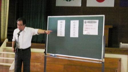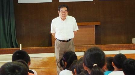 始めに、校長先生のお話がありました。まず最初に、礼の仕方について話されました。礼の仕方は、相手の人が礼をして、頭を基の位置に直した後に、礼を行うこと。また、語先後礼の励行を行うことについてご指導いただきました。次に、今月から「クールビズが始まります」と言って、先生方の服装が替わることについてお話いただきました。最後に、毎朝の登校班のあいさつについて、素晴らしい班の紹介とともに、みんなで自分から進んで実行するようにがんばりましょうと励ましの言葉をいただきました。