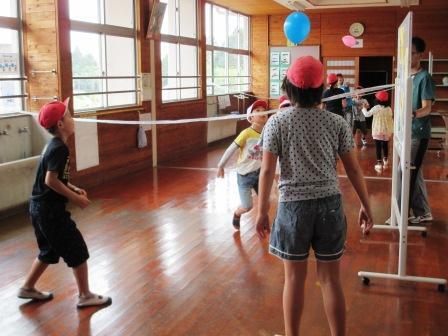 続いて、グループごとに、ゲームを行いました。A「長縄」 B「ころがしドッジボール」 C「物あてゲーム」 D「おじゃみ投げ」 E「風船バレー」 F「目隠しカンとり」のゲームを順に行って、1年生とともにゲームを設定している教室等を廻るものです。みんなで協力し合って、ゲームに取り組む姿は、真剣そのものでした。みんな、汗びっしょりになりながらも、とても、有意義な一時を過ごすことができました。