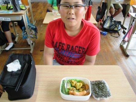 昼食は、「弁当の日」の取り組みで、低学年は、お家の人が、作ってくださったおかずやごはんをお弁当にきれいに詰める係、中・高学年は、自分で献立を考え、自分で作ってお弁当に飾りつける係と、学年に応じて、自分のお弁当を準備しての昼ごはんでした。とても、おいしいお弁当になったと思います。きっと、よく味わって食べることができたでしょうね。