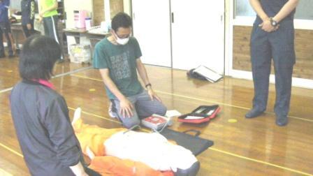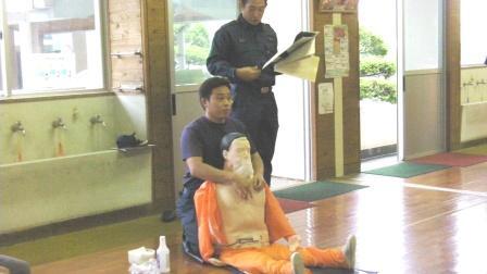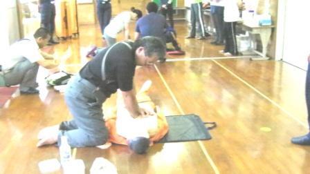 始めに、救急救命士の方より、心肺蘇生の仕方について、説明と実地講習がありました。質問を交えながら、とても分かりやすく丁寧に説明していただきました。