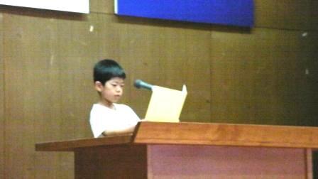 次に、2学期がんばりたいことについて、全校児童を代表して、4年のじゅんぺいさんと、ゆうかさんが、大きな声で、順序よく、立派に発表を行い、頑張りたいという決意が伝わってくる発表でした。