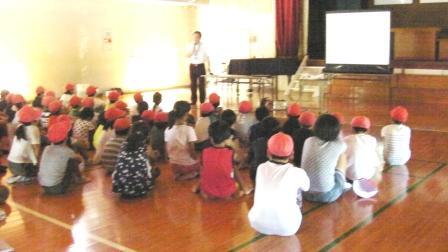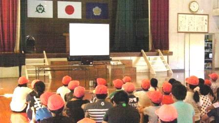 次に、体育館へ移動し、DVD「もしも、地震が起きたら、自分の命を、どんなにして守りますか。」を視聴しました。みんな、真剣に見ていました。地震は、いつ起きるかわかりません。いつ起きても、自分で安全な場所を見付け、命を守る行動がとれる人になってほしいものです。