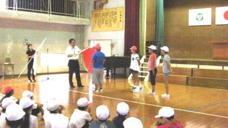 最後に、学力向上担当の先生から、今月の目標「話をよく聞き 進んで発表しよう」について、全校児童によくわかる言葉で、お話していただきました。