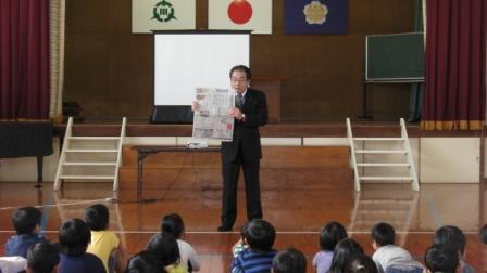 始めに、校長先生のお話がありました。「10月は運動会をはじめ、たくさんの行事がありましたが、全校児童で協力し、全力で取り組む姿に、観ている方々の感動を与えてくれました。大変立派でした。」と、ねぎらいの言葉をいただきました。また、「11月と聞いて、何を思い浮かべますか?」と問われ、「読書の秋、特に、新聞記事にも目を向け、進んで読むようにしましょう。図書室に、新聞を保存していますので、たくさん利用しましょう。」と、話されました。最後に、「5月から、1~3年生が、取り組んできた小菊を育てる活動が実を結び、たくさんの花を咲かせています。小さな菊の新芽が、大きな花の束に成長してきました。命を大切にしながら、きれいな花の開花を見守っていきましょう。」と、お話いただきました。
