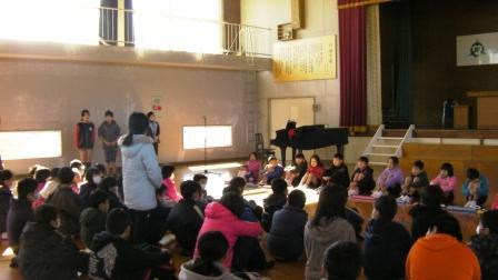 始めに、詩の朗読でした。「雪」や「あいうえおにぎり」の詩を、表情豊かに表現できました。