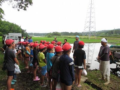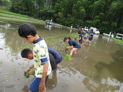 今回はその大事に育てた苗を使って3~6年生の児童が田植え体験をしました。