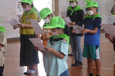 最後に、児童は、みどりの少年団のちかいの言葉をはっきりと読み上げ、少年団の一員として頑張ることを誓いました。