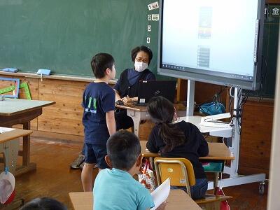 山本小学校では、4年生以上の学級にタブレットが届いており、上学年は少しずつタブレットを活用した学習に取り組んでいます。